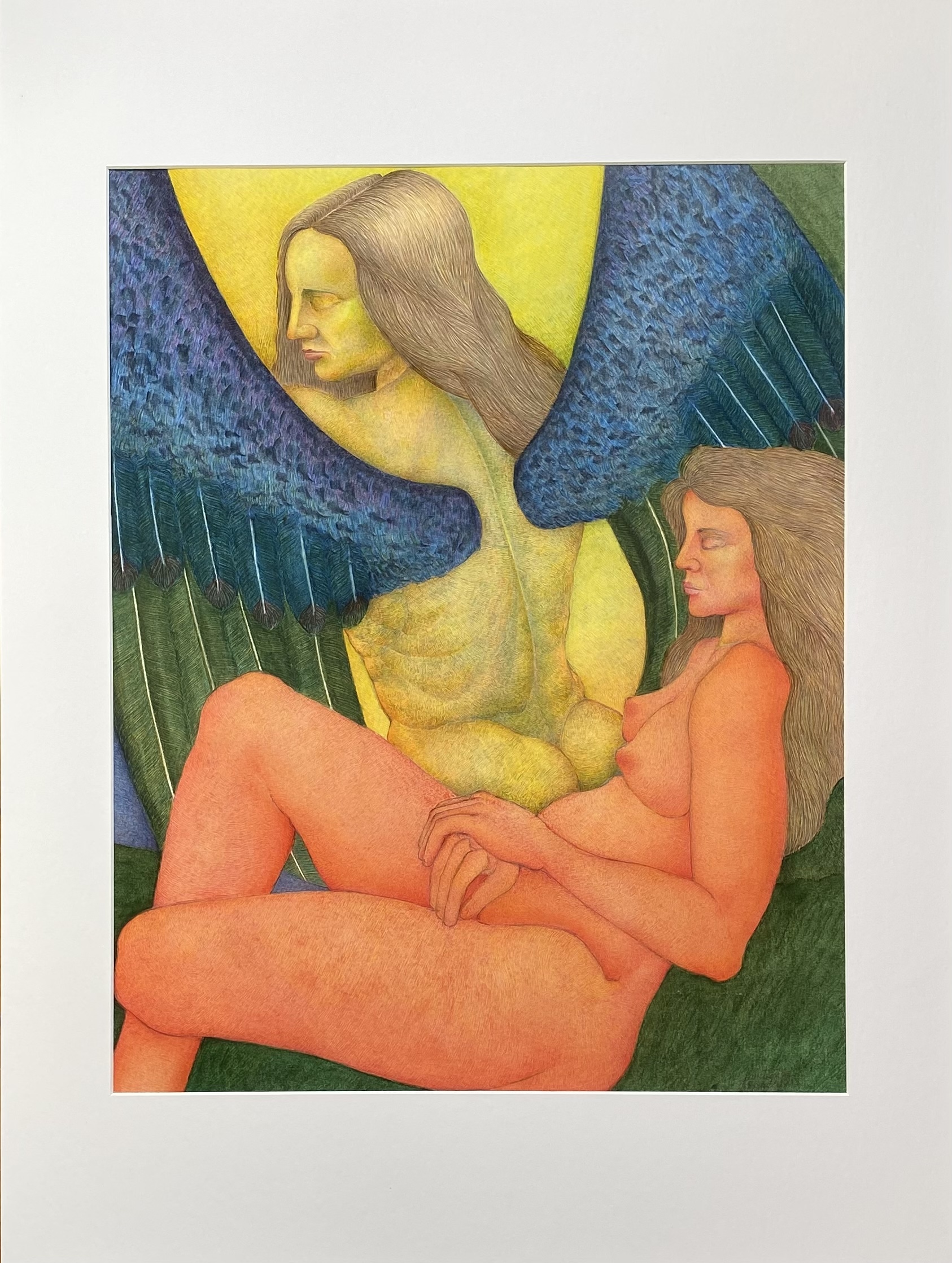 Pastel crayon, colored pencils and pencil on paper. Framed